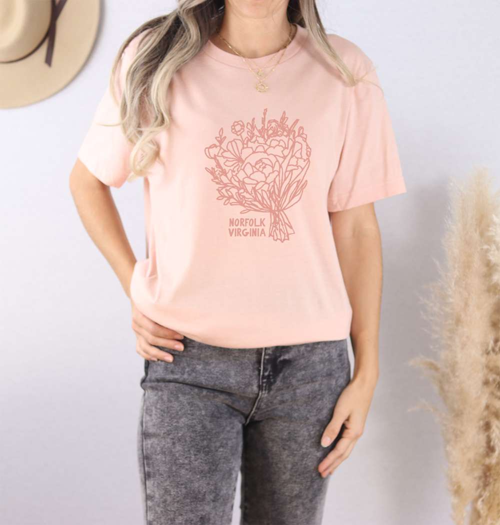 Hand Drawn Bouquet w/ City and State - Custom Short Sleeve T-Shirt
