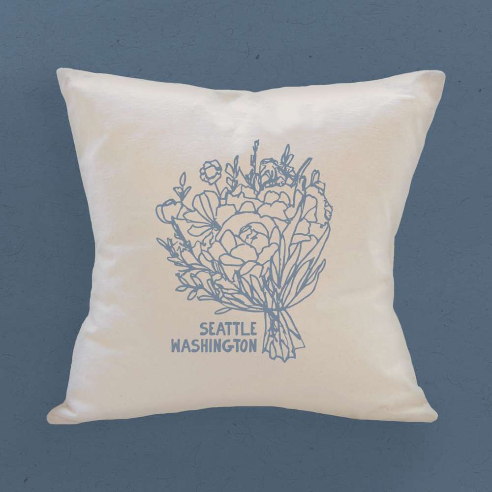 Hand Drawn Bouquet City State - Custom Square Canvas Pillow