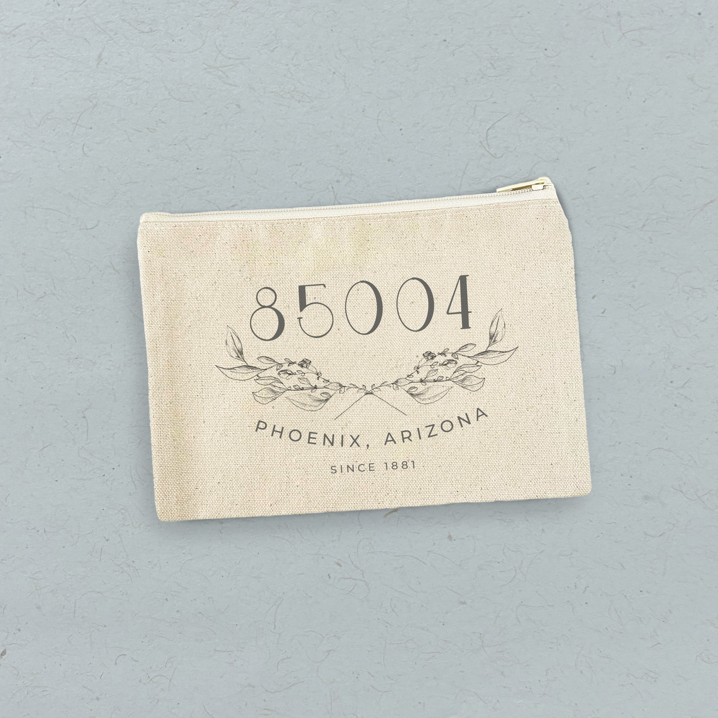 Hand Drawn Branches City State Zip Est - Custom Canvas Zipper Pouch