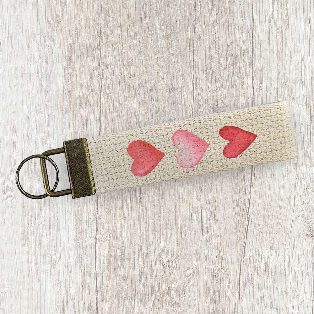 Row of Hearts - Valentine's Day Canvas Key Fob