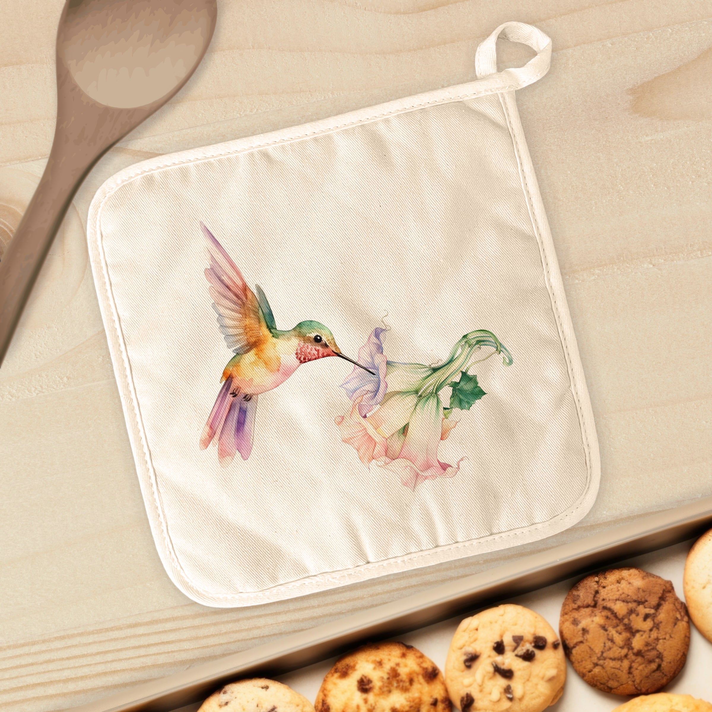 Hummingbird and Trumpet Flower - Cotton Pot Holder