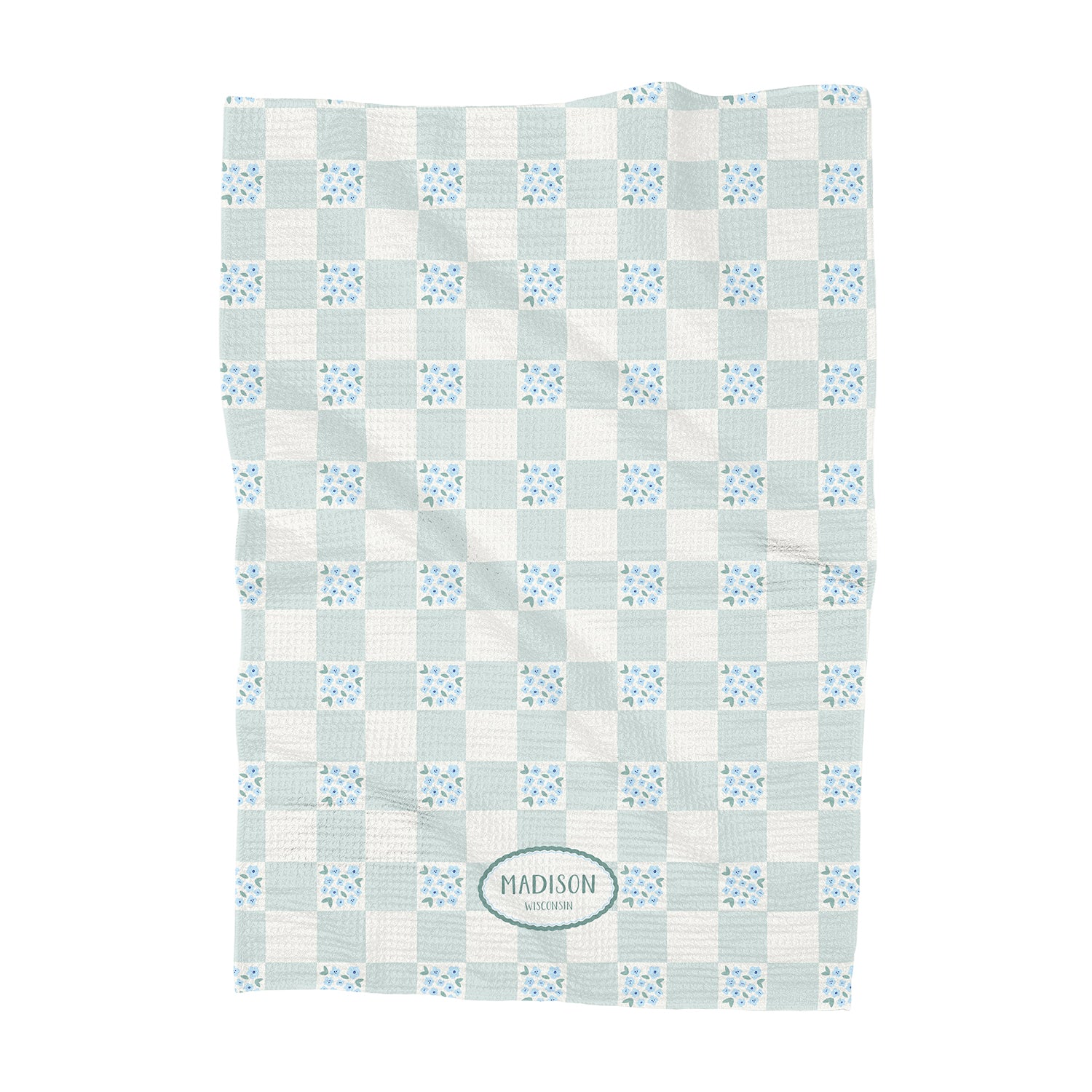Green Floral Picnic Plaid - Custom Waffle Weave Towel