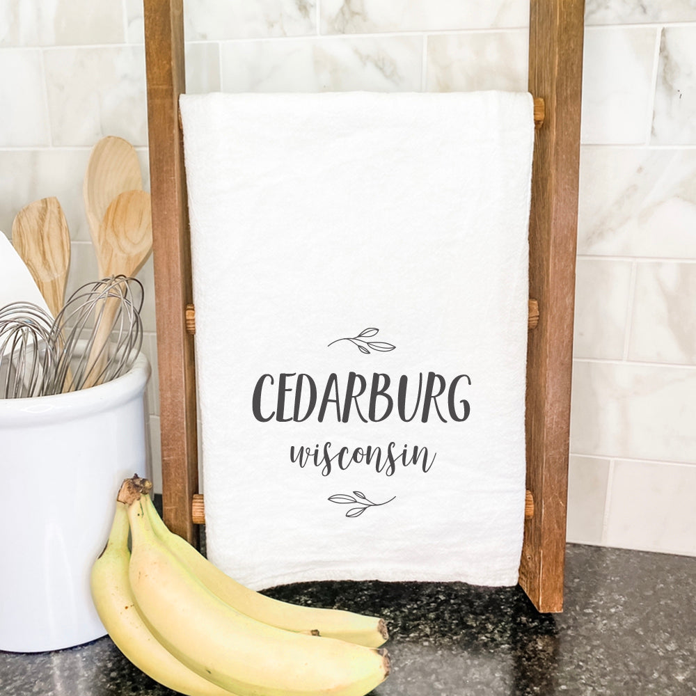 Leaf Framed City/State - Custom Cotton Tea Towel