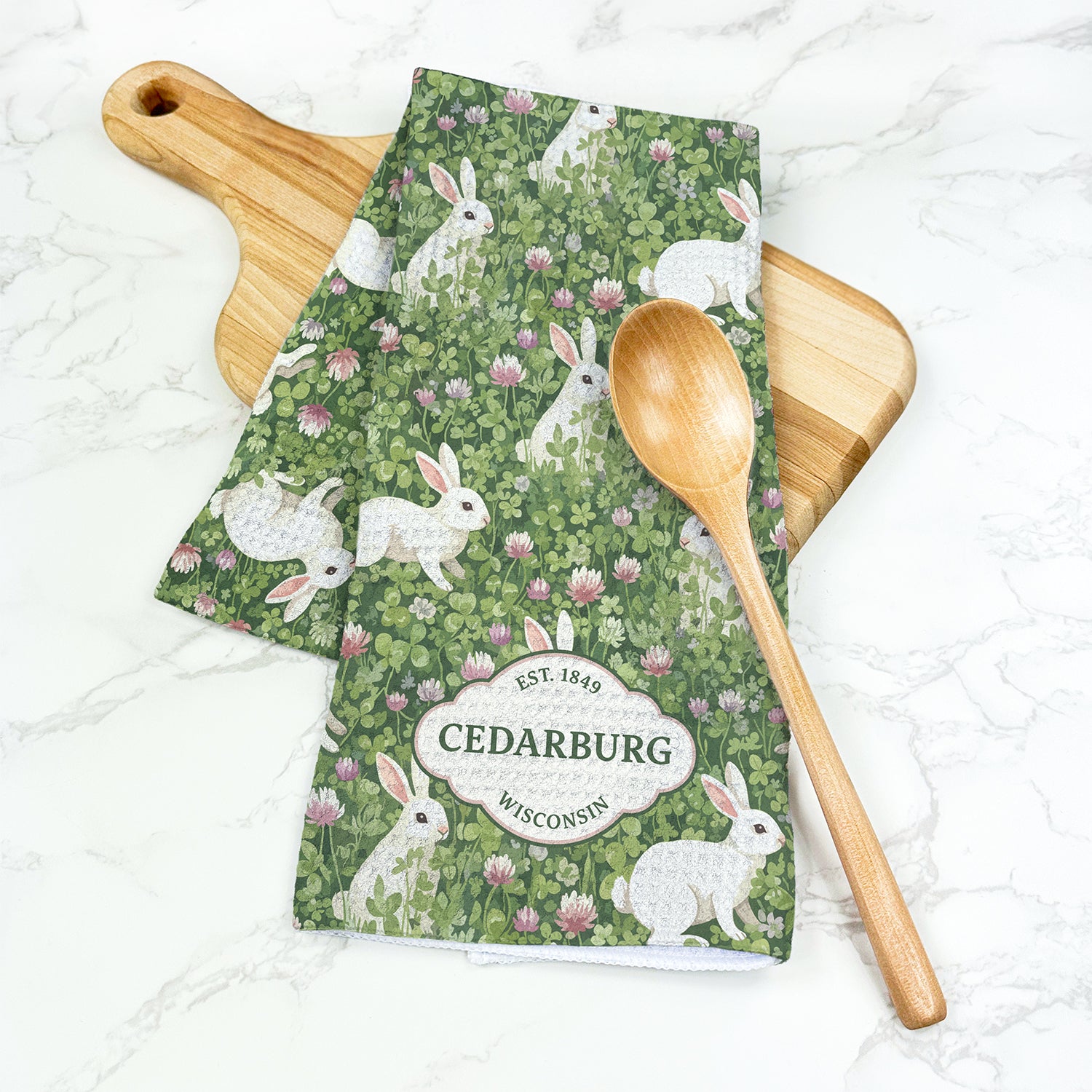 Rabbits in a Clover Field - Custom Waffle Weave Towel
