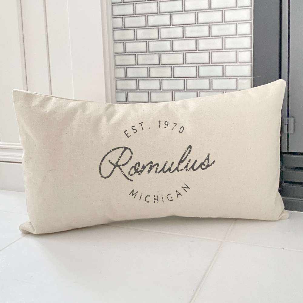 Vintage Script City w State EST - Custom Rectangular Canvas Pillow