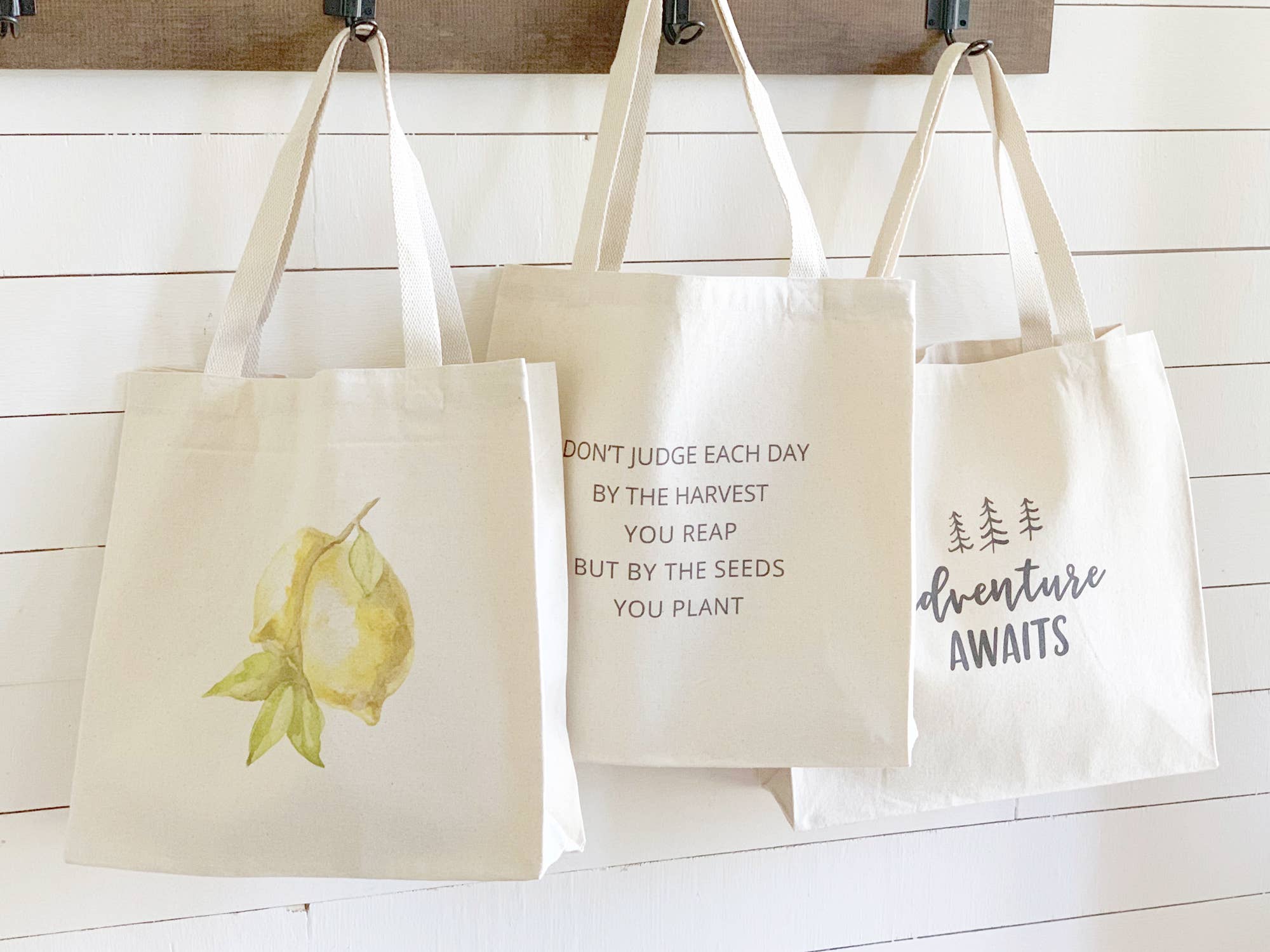 Each tote is handprinted with unique designs, created with water-based inks that are built to last without fading or wearing over time. Made from durable 12 oz canvas with reinforced webbing straps and a comfortable 13" strap drop, our totes are perfect for carrying your essentials. With a size of 14" tall by 14" wide by 5" deep, it's as functional as it is stylish. Crafted with care by our small business in rural Wisconsin.