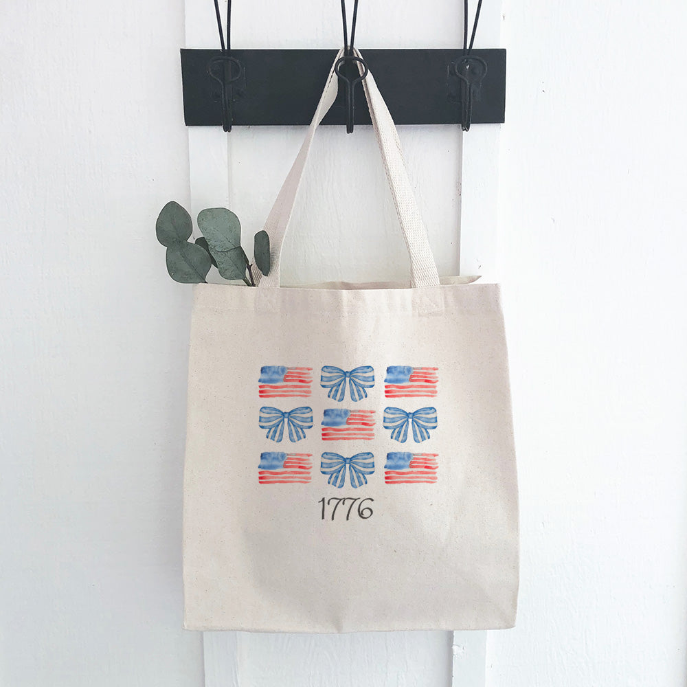 Watercolor Flags & Bows - Patriotic Canvas Tote Bag