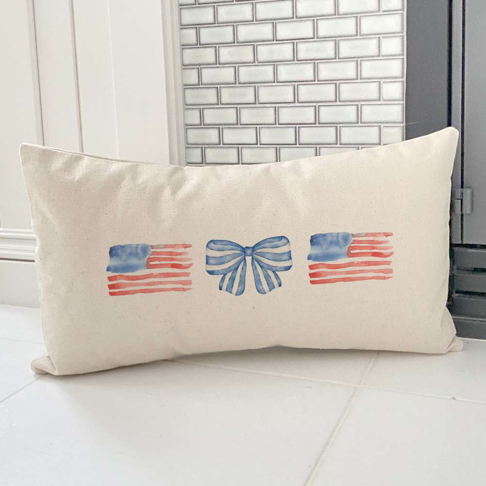 Watercolor Flags & Bows - Patriotic Rectangular Canvas Pillow