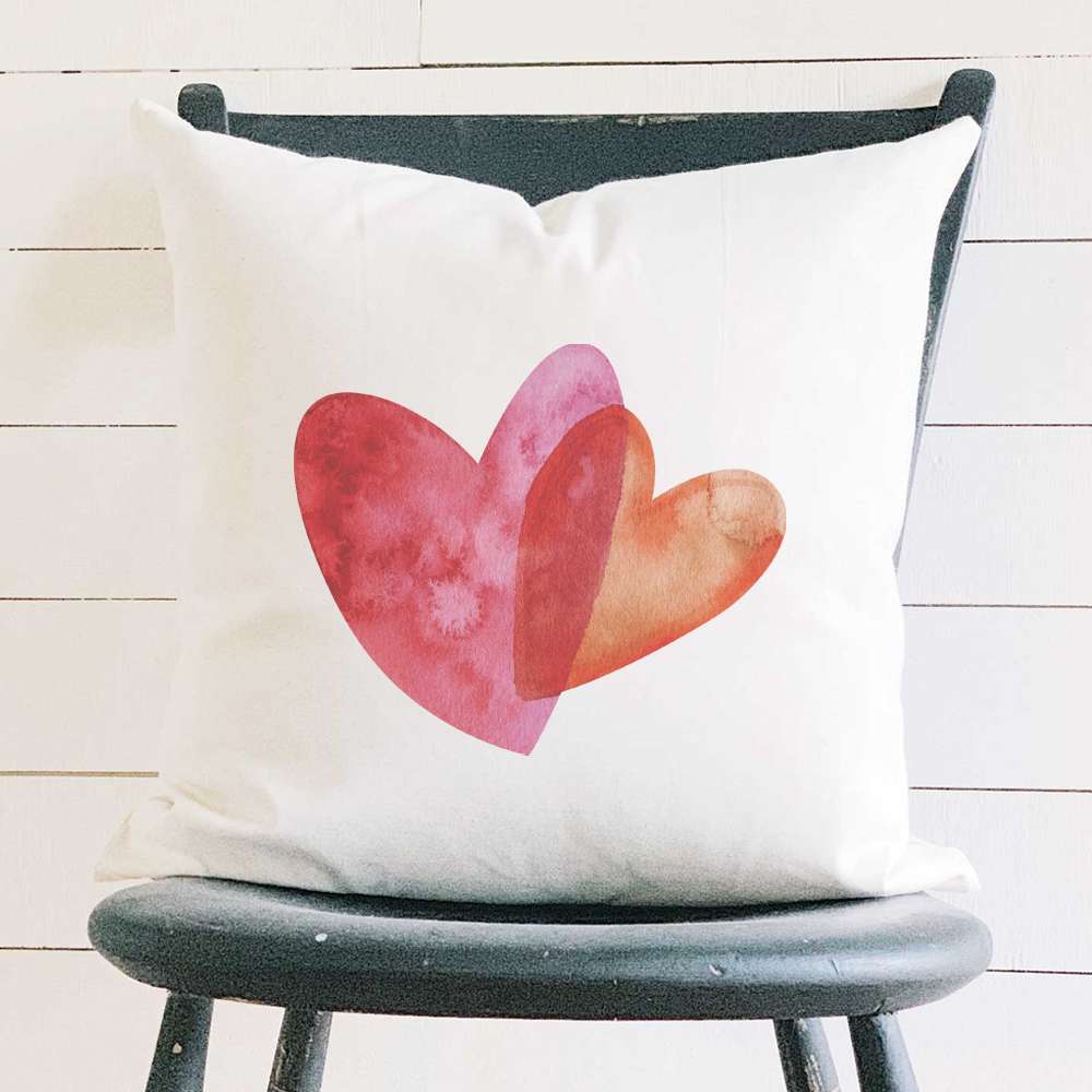 Orange and Pink Double Heart - Square Canvas Pillow