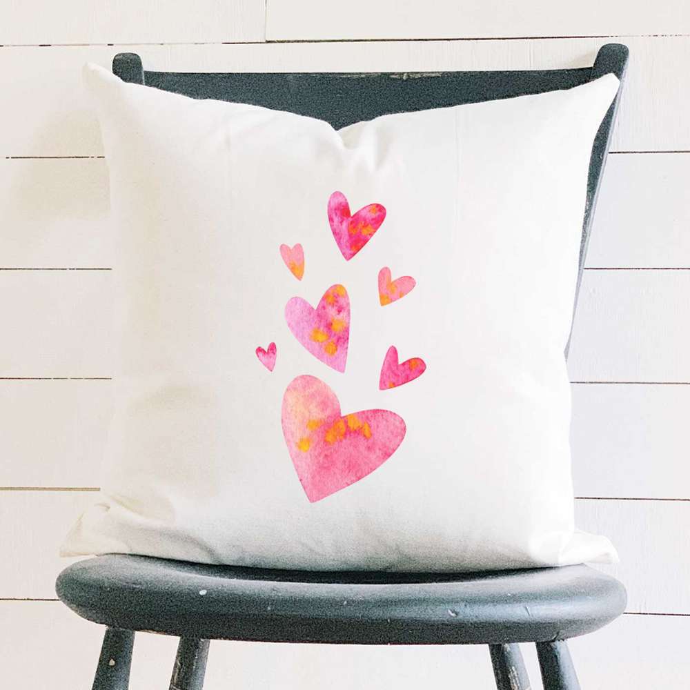 Orange and Pink Group of Hearts - Square Canvas Pillow