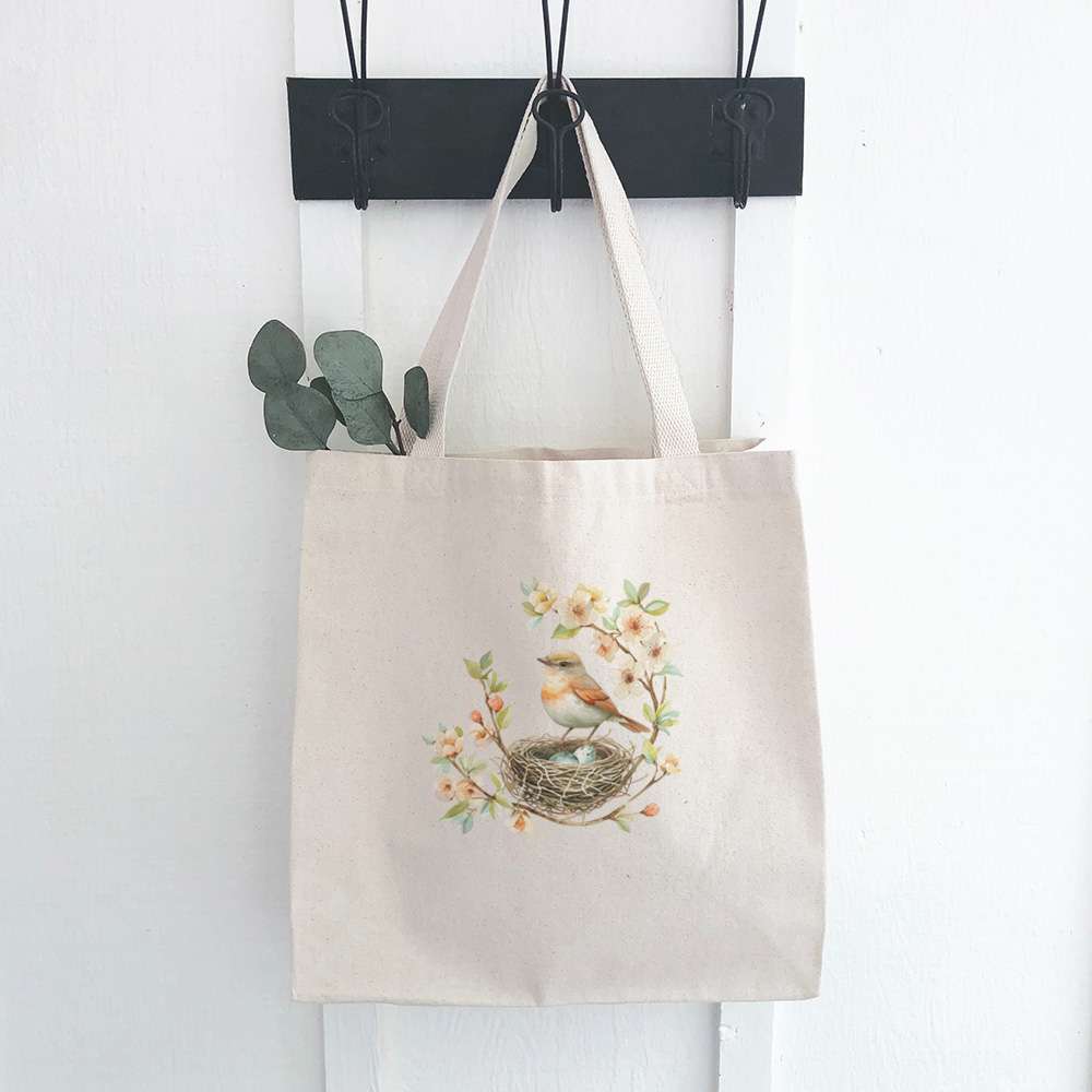 Robin in a Cherry Blossom - Spring Canvas Tote Bag