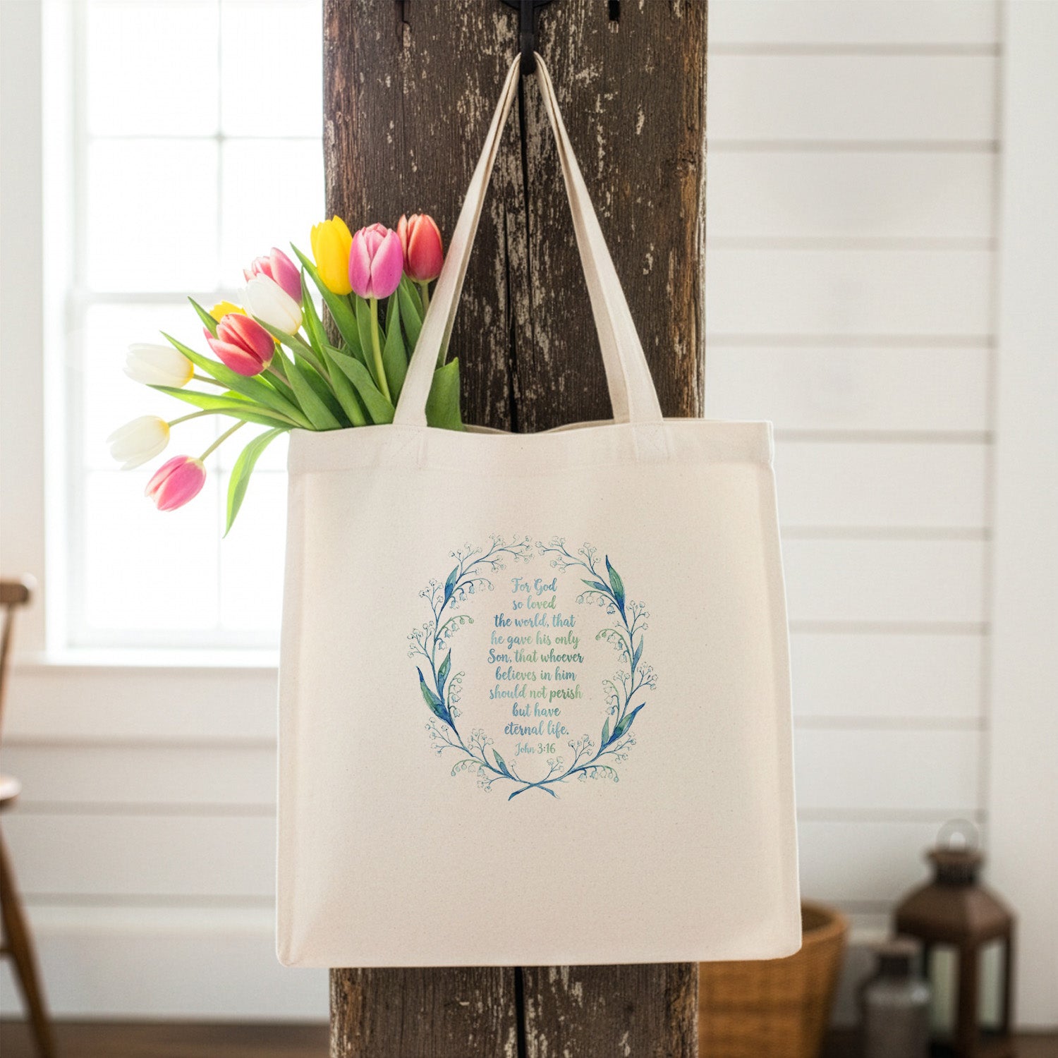 So Loved The World Spring Wreath - Canvas Tote Bag