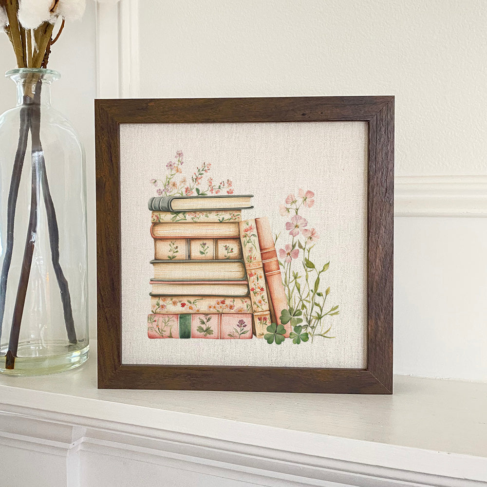 Spring Book Stack - Framed Sign