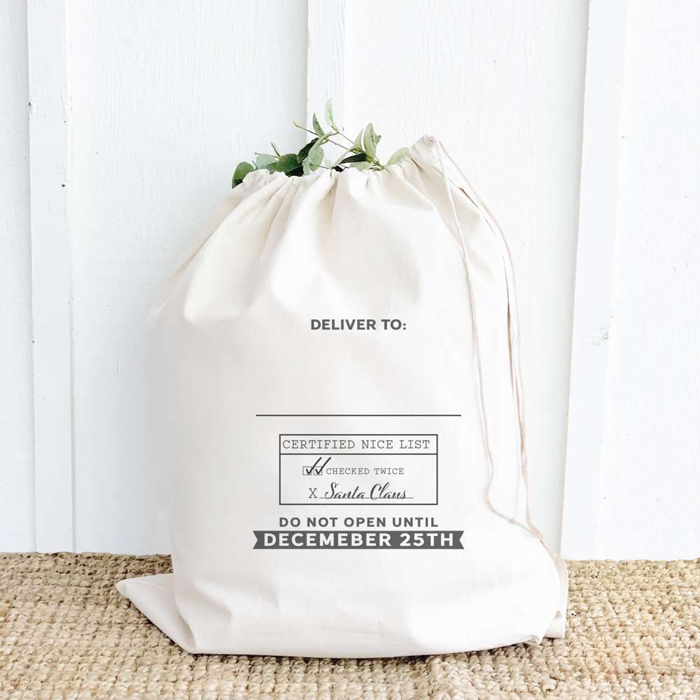 Our Santa Sacks are the perfect way to haul gifts to Christmas gatherings or to leave under the tree. They are sure to bring a smile to anyone's face and help to spread Christmas joy! We recommend spot cleaning when necessary. These bags can be washed but since they are made of 100% cotton, some shrinkage will occur.