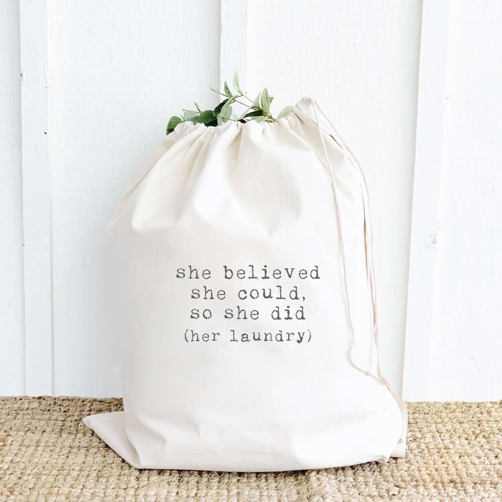 Our canvas laundry bags are durable and functional--great for college students transporting laundry back and forth, or just to keep laundry organized at home. We recommend spot cleaning when necessary. These bags can be washed but since they are made of 100% cotton, some shrinkage will occur.