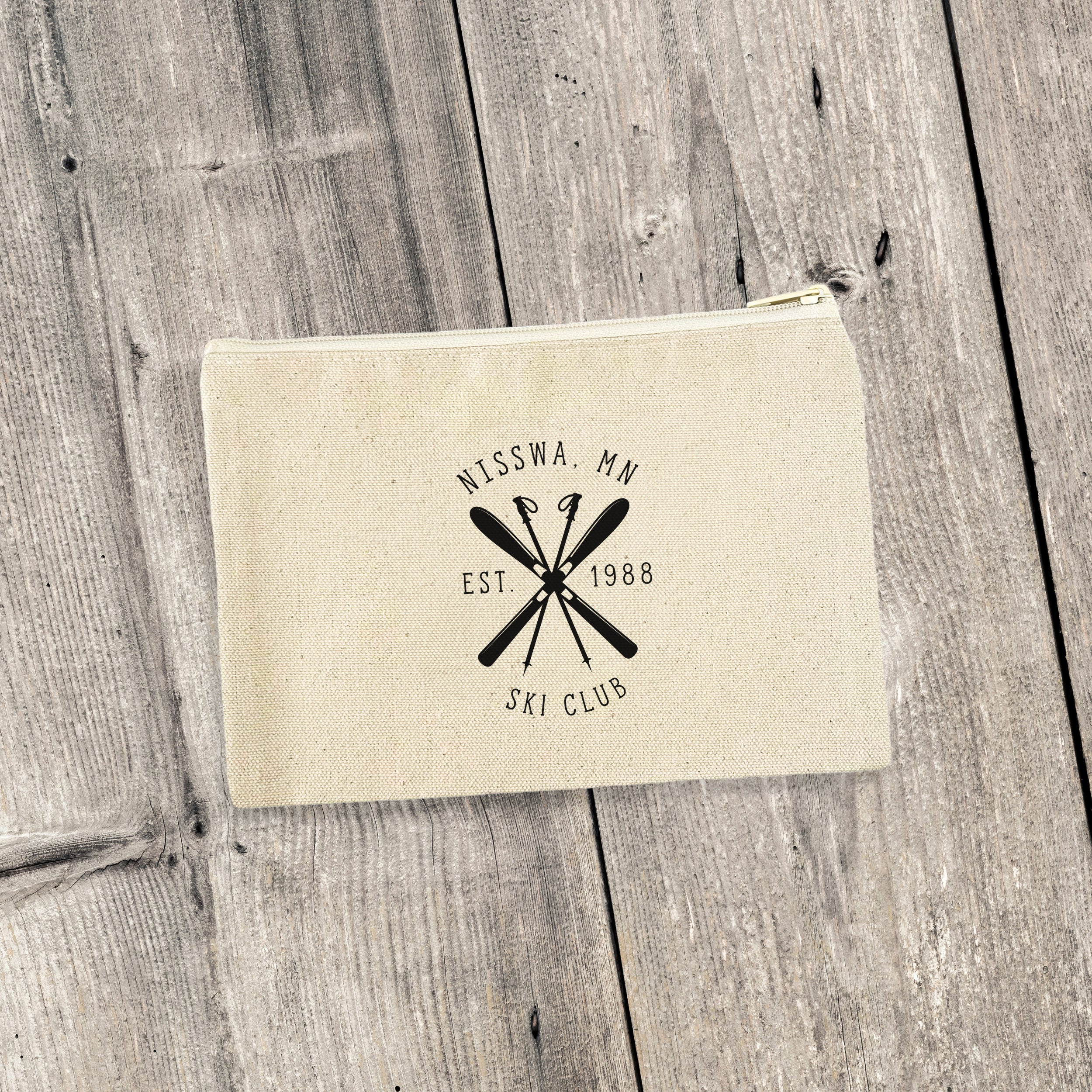 Ski Club w/ City, State - Custom Canvas Zipper Pouch