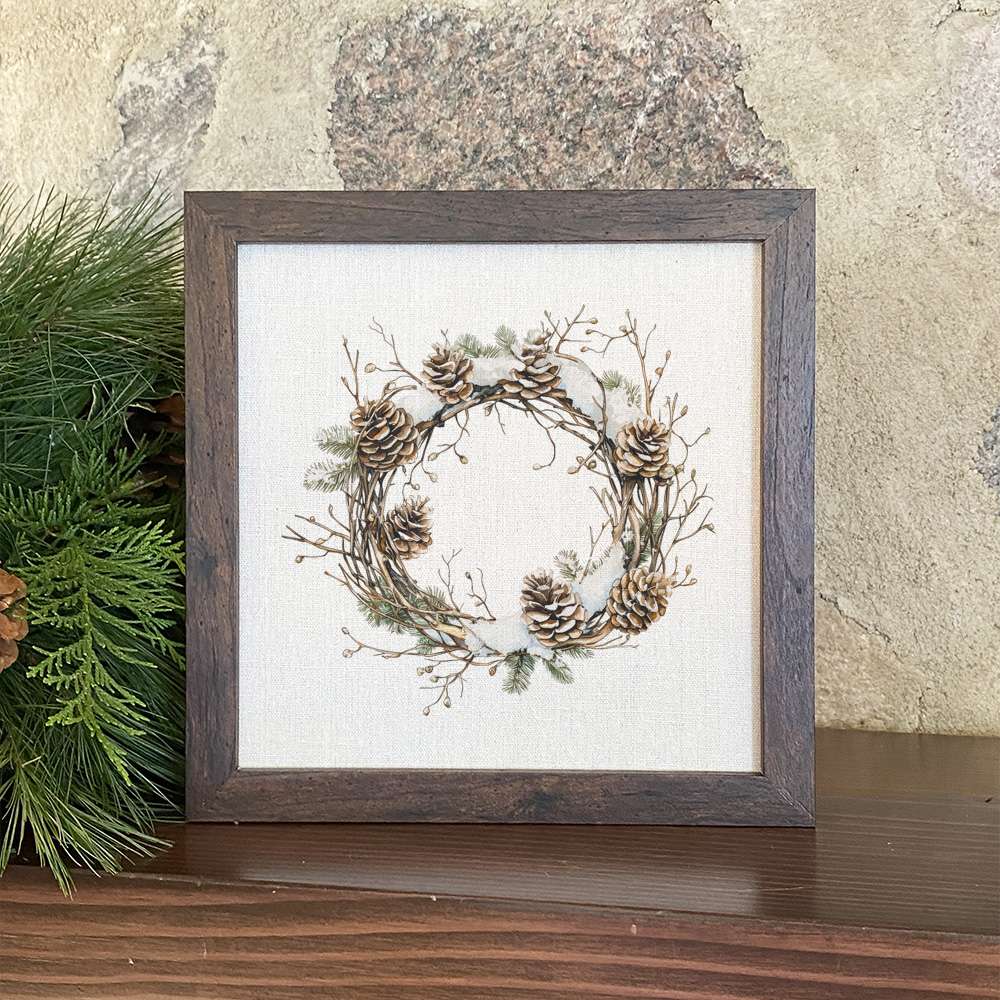 Rustic Pinecone Wreath - Winter Customizable Framed Sign