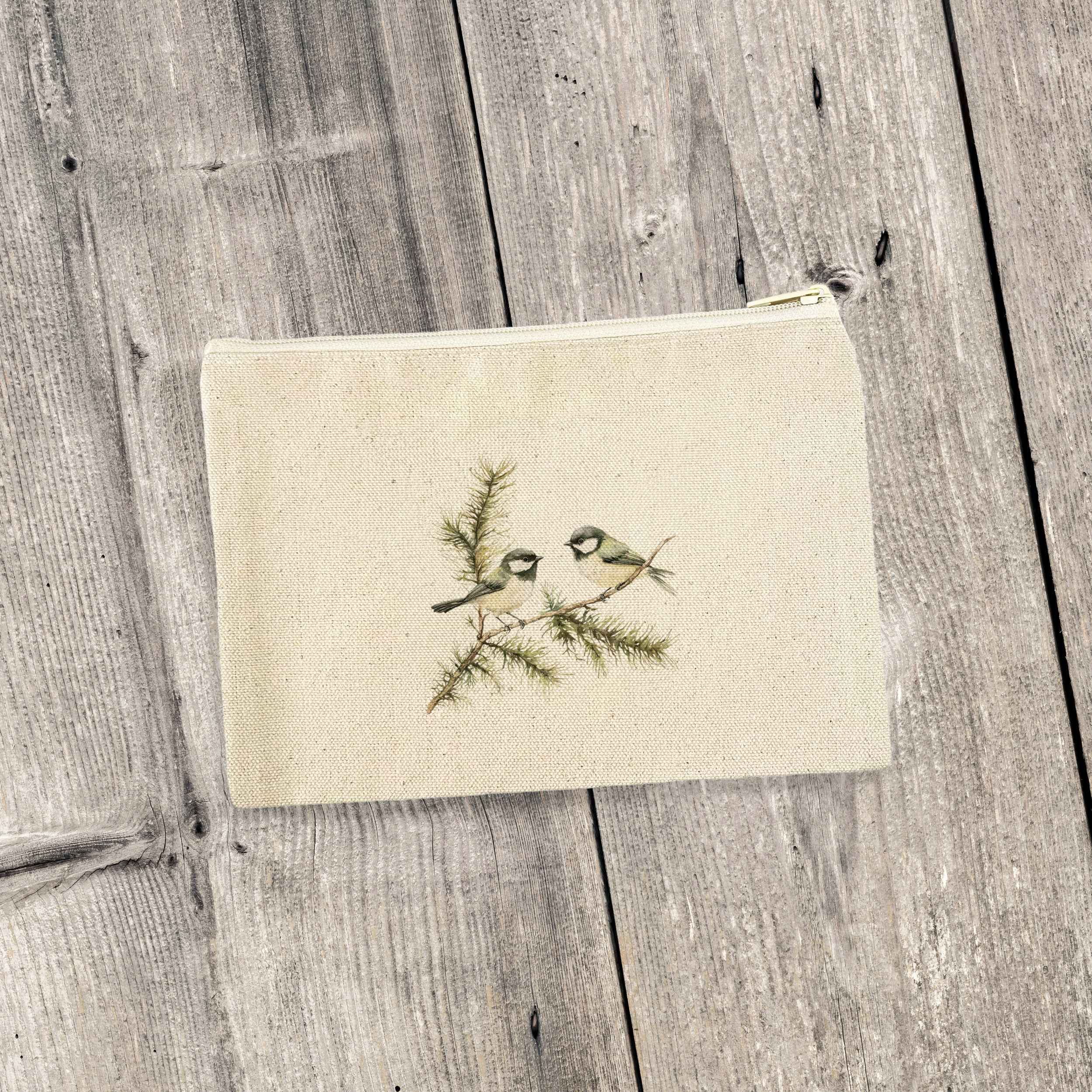 Chickadee Pair - Spring Canvas Zipper Pouch
