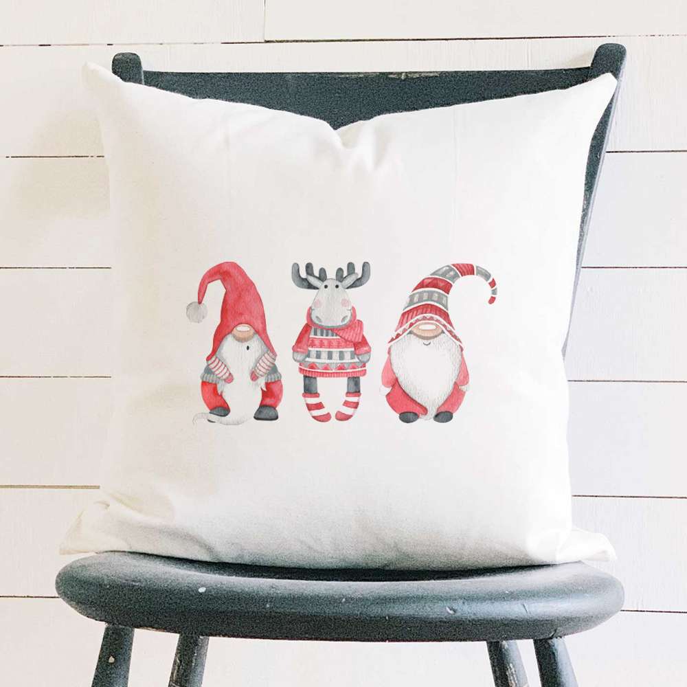 Christmas Gnomes with Moose - Square Canvas Pillow