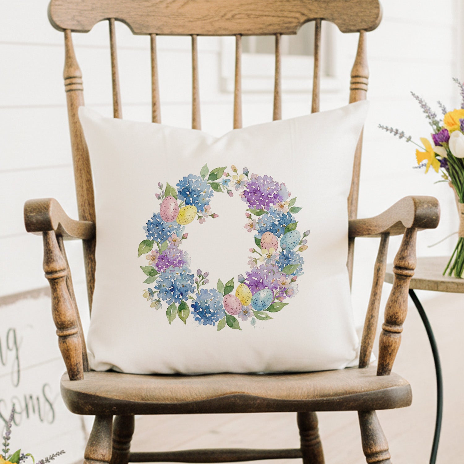 Easter Hydrangea Wreath - Square Canvas Pillow