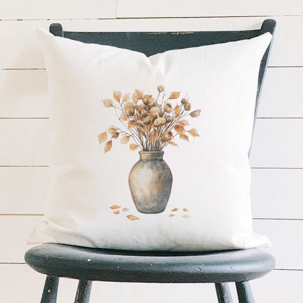 Fall Leaves Vase - Customizable Square Canvas Pillow