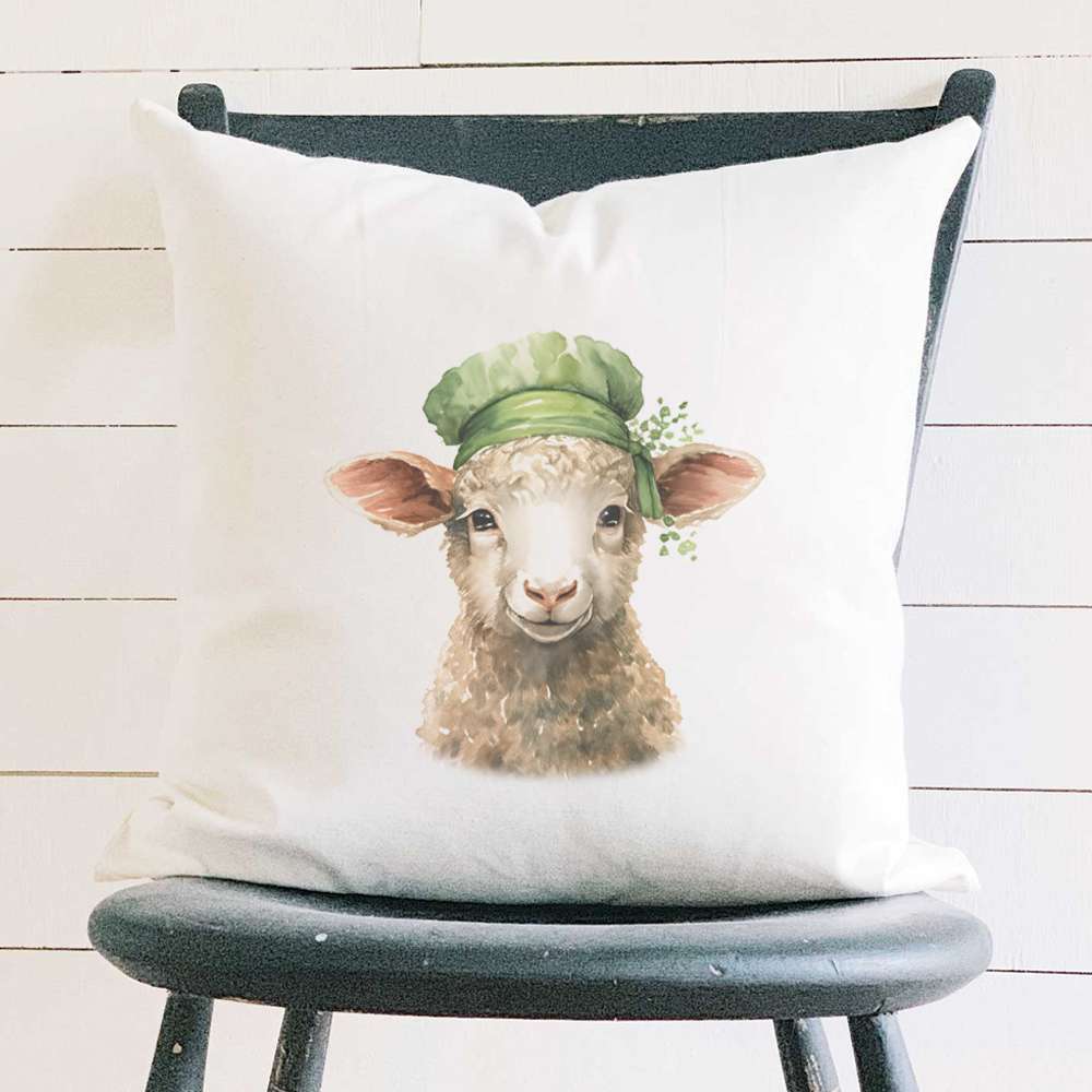 Lamb with Green Hat - St. Patrick's Day Square Canvas Pillow