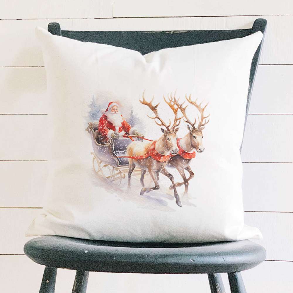Santa and Reindeer Sleigh - Square Canvas Pillow