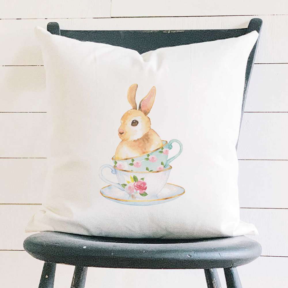 Watercolor Bunny Teacup - Square Canvas Pillow