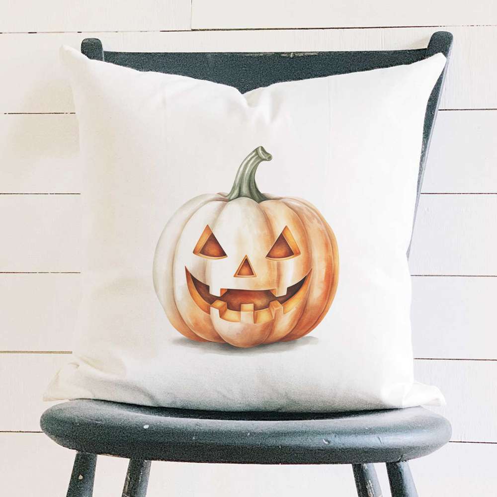 Watercolor Carved Pumpkin - Square Canvas Pillow