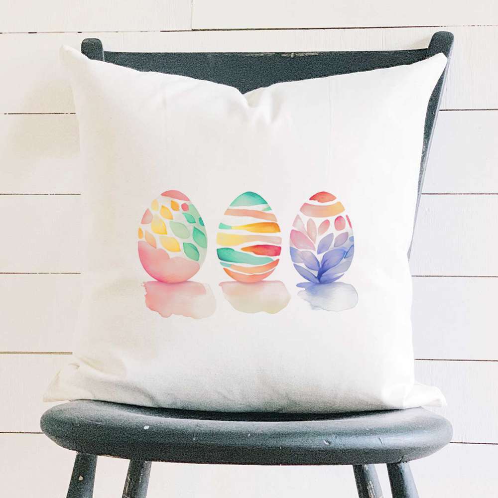 Watercolor Easter Eggs - Warm - Square Canvas Pillow