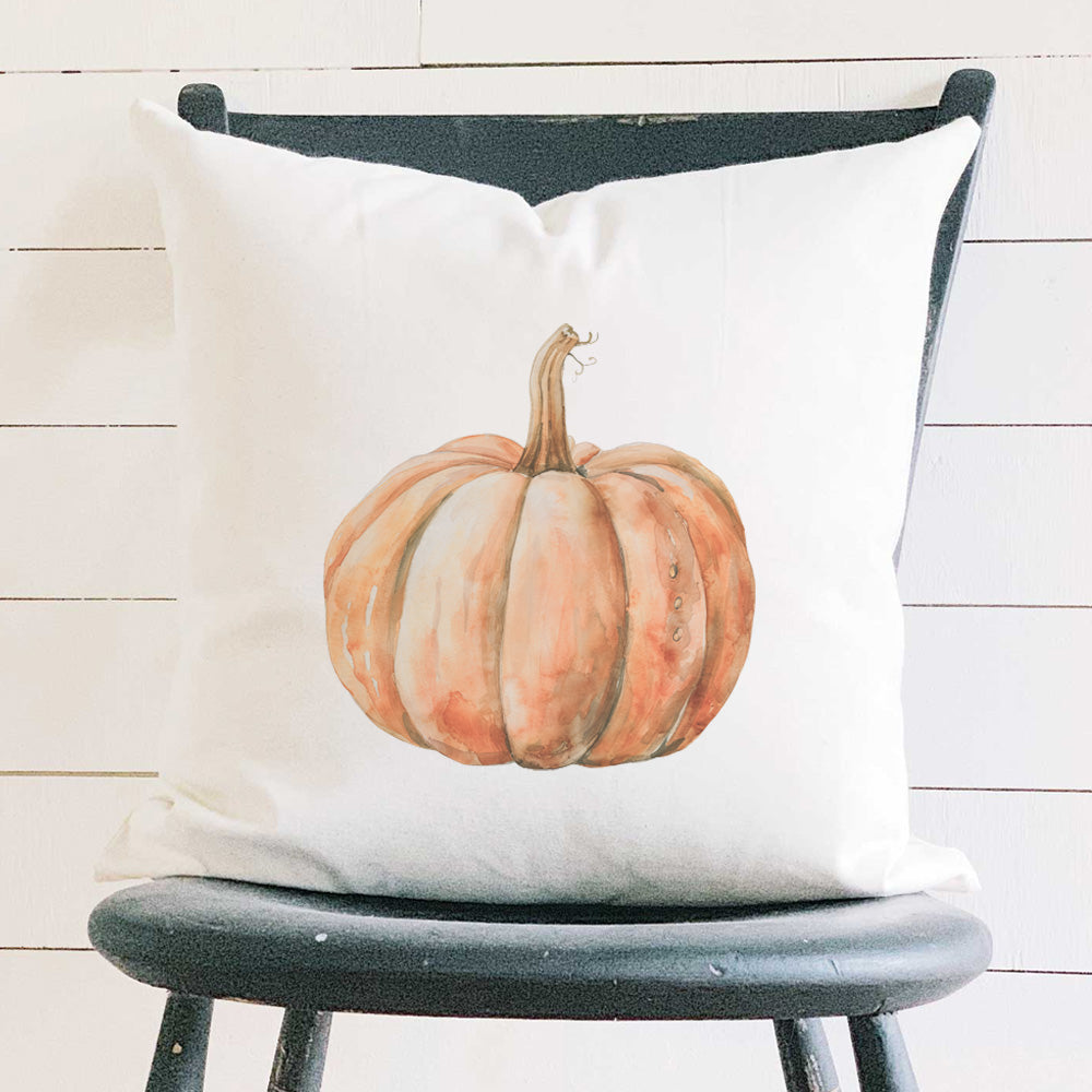 Watercolor Pumpkin - Customizable Autumn Square Canvas Pillow