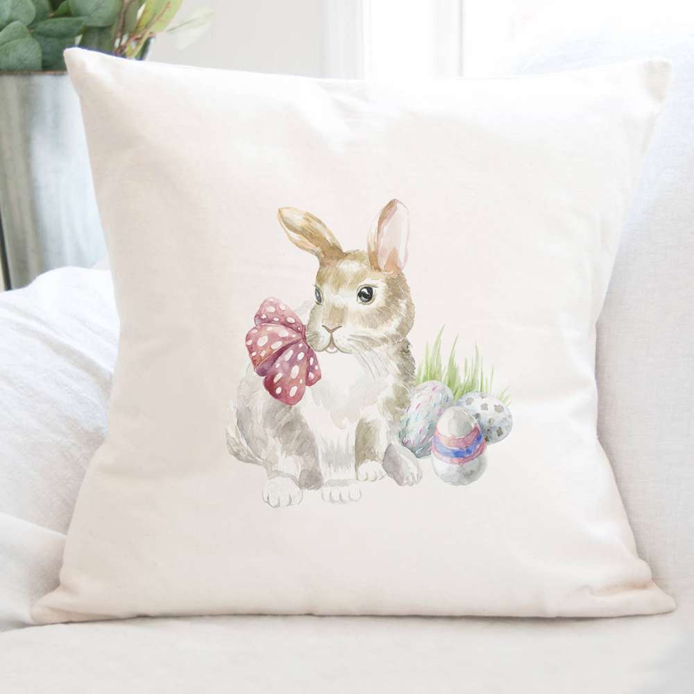 Watercolor Rabbit with Eggs - Square Canvas Pillow