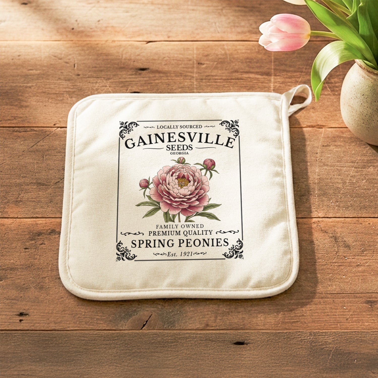 Spring Peonies Seed Packet - Custom Cotton Pot Holder