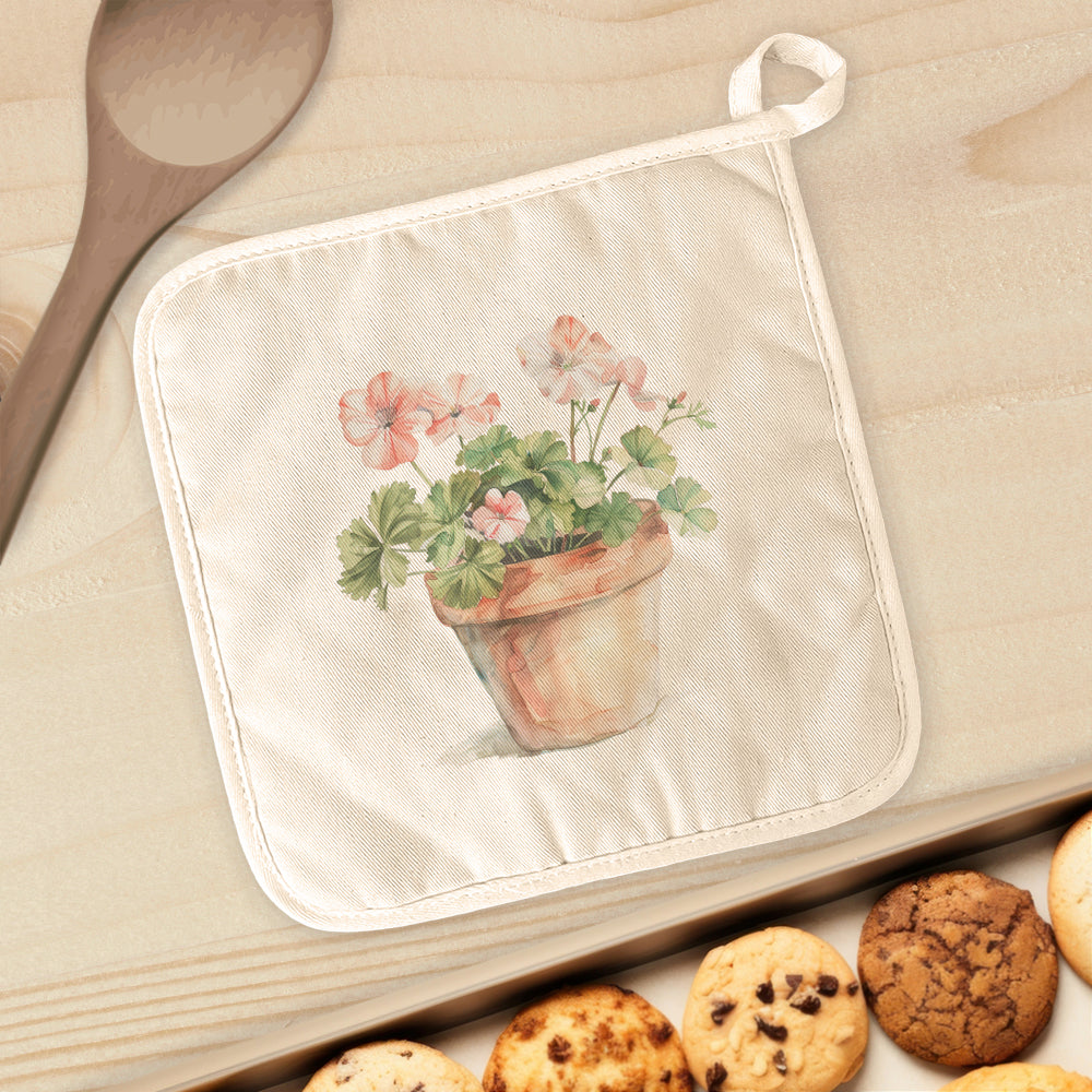 This cotton and terry cloth pot holder's convenient square shape makes it perfect to use as a hot pad to protect counters and tabletops from hot cookware and to use while handling pots and pans on the stovetop. Our beautiful designs are printed-to-order in rural Wisconsin using vibrant water-based inks.