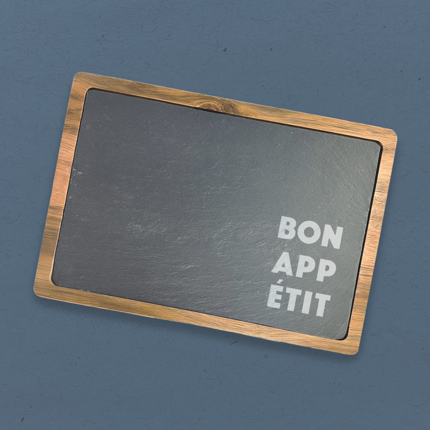 Designed to impress, these slate serving boards combine the natural warmth of acacia wood with the sleek texture of slate. Durable and stain-resistant, they're ideal for charcuterie boards, cheese platters, small bites or a thoughtful housewarming gift. A beautiful and functional display piece for any kitchen or gathering. Hand wash only.