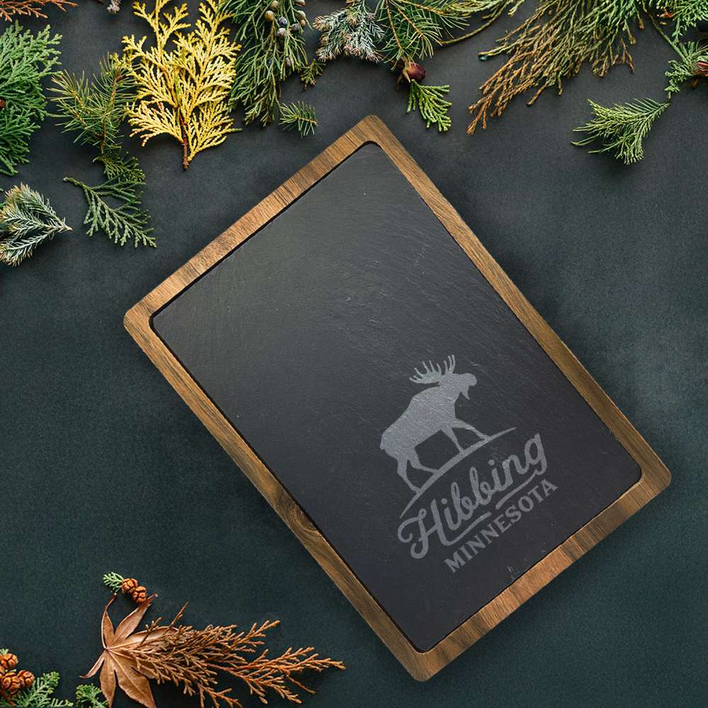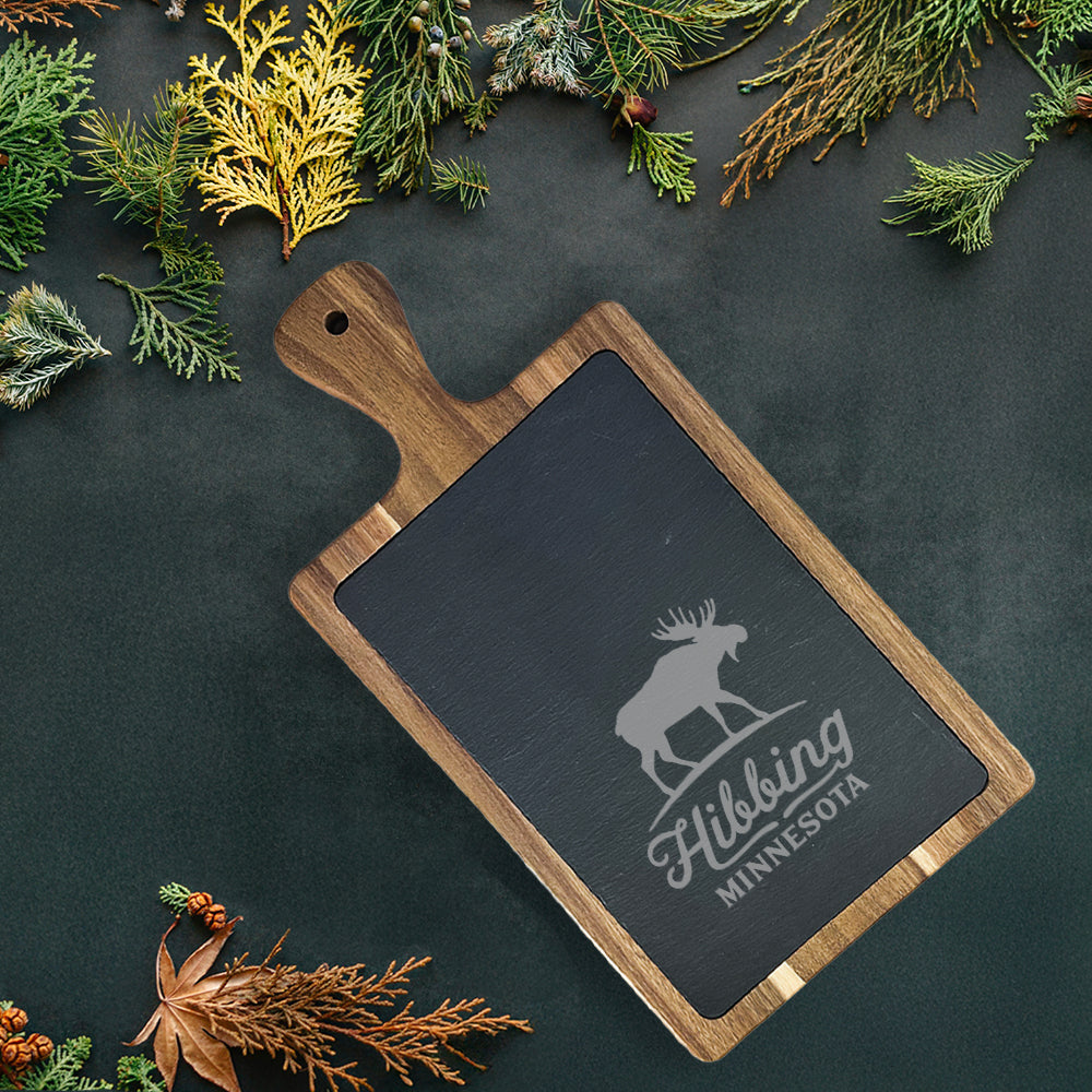 Designed to impress, these slate serving boards combine the natural warmth of acacia wood with the sleek texture of slate. Durable and stain-resistant, they're ideal for charcuterie boards, cheese platters, small bites or a thoughtful housewarming gift. A beautiful and functional display piece for any kitchen or gathering. Hand wash only.