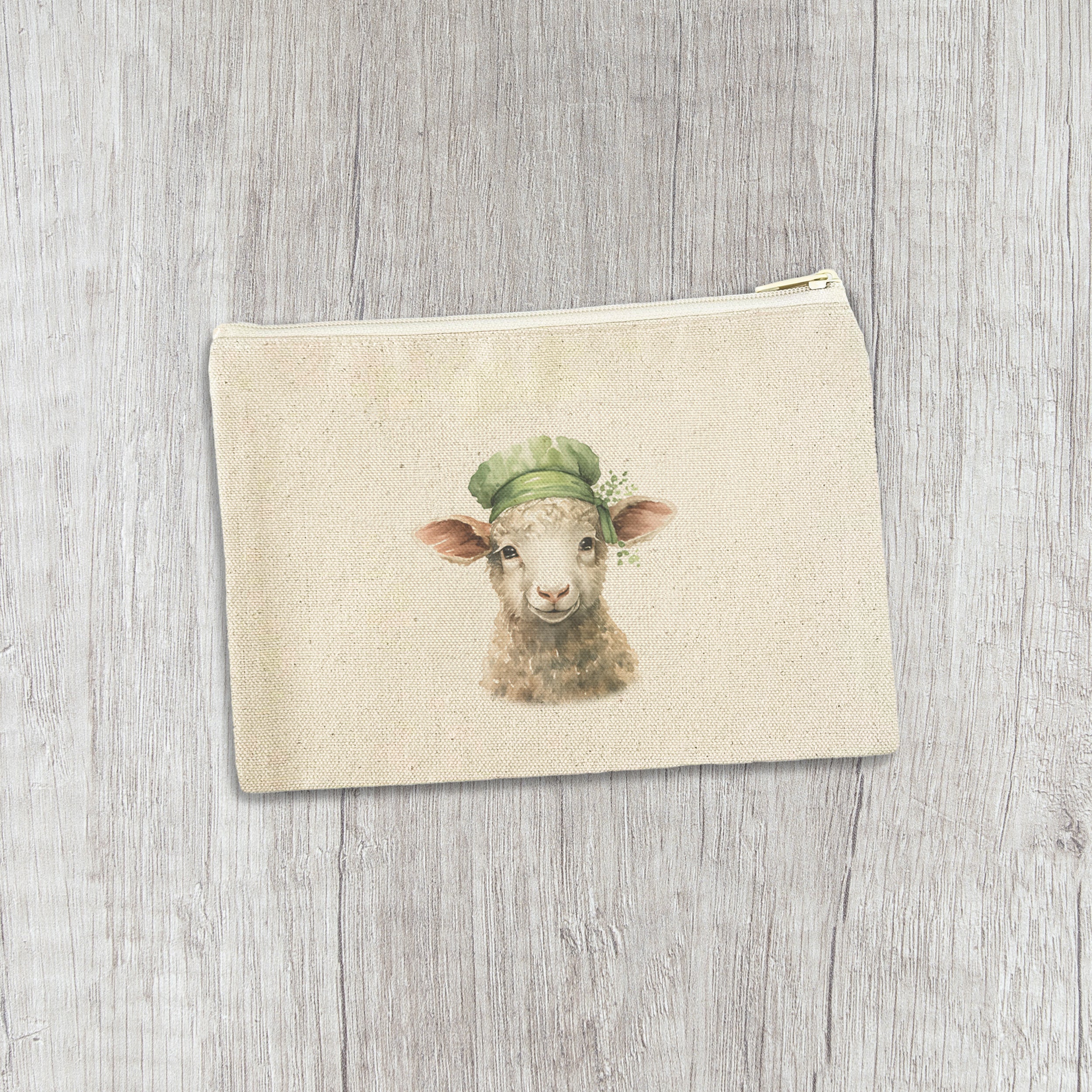 Lamb with Green Hat - St. Patrick's Day Canvas Zipper Pouch