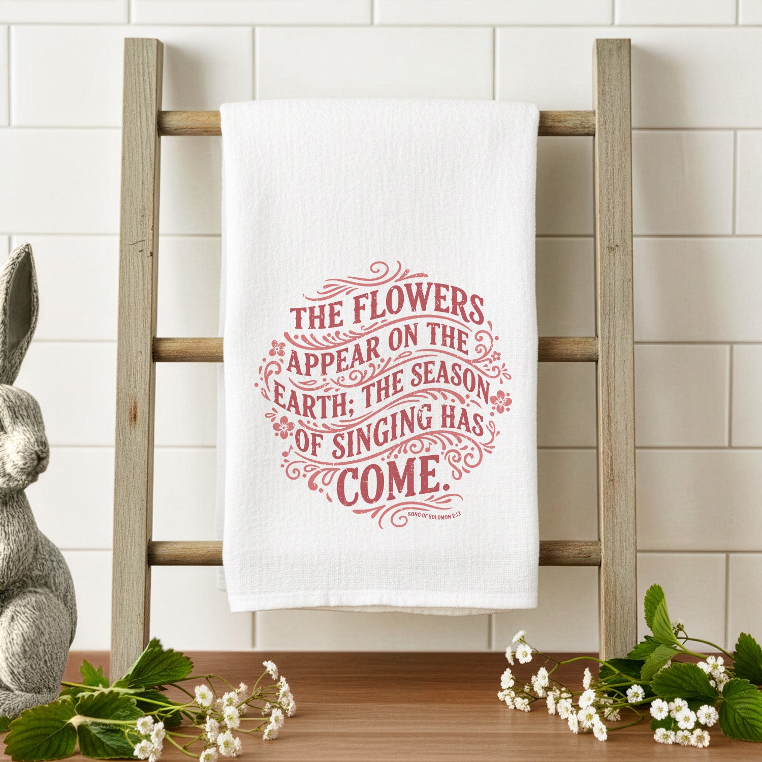 Flowers Appear on Earth Bible Verse - Tea Towel