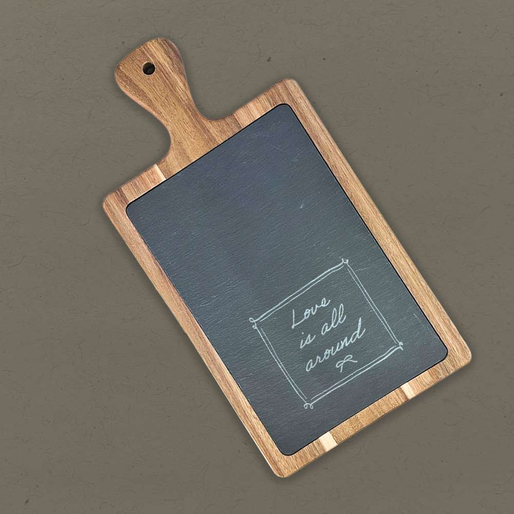 Designed to impress, these slate serving boards combine the natural warmth of acacia wood with the sleek texture of slate. Durable and stain-resistant, they're ideal for charcuterie boards, cheese platters, small bites or a thoughtful housewarming gift. A beautiful and functional display piece for any kitchen or gathering. Hand wash only.