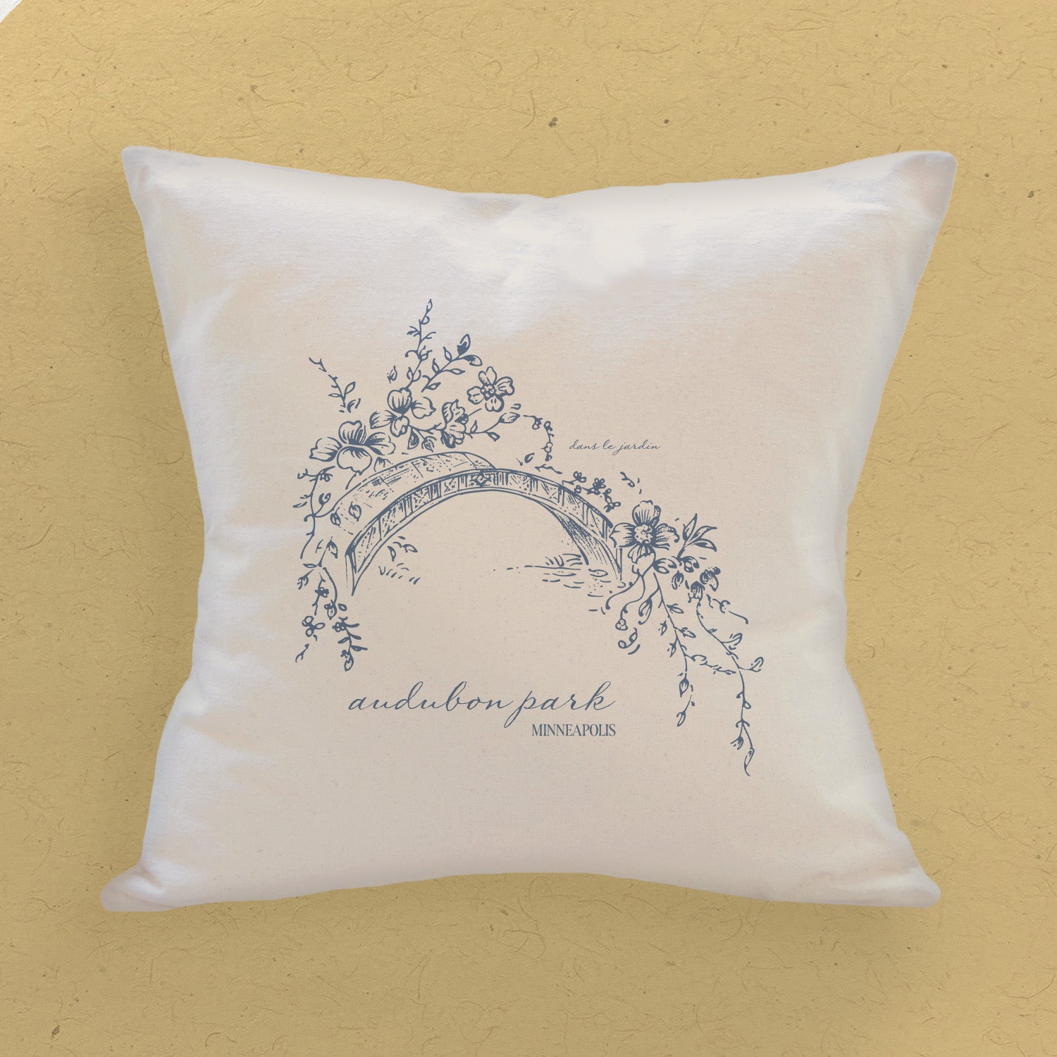 Park Bridge w/ City & State - Custom Spring Square Canvas Pillow