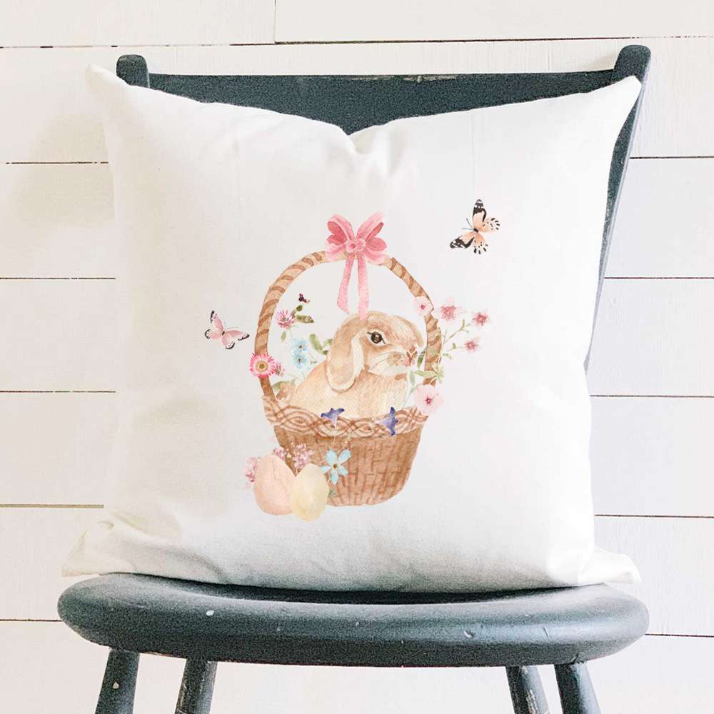 Watercolor Bunny in a Basket - Square Canvas Pillow